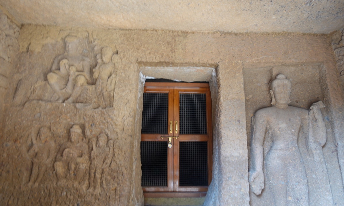 坎赫里洞穴位於山坡上,可通過鑿岩台階進入。這個洞穴群包括一百零九個洞穴,這些洞穴是用玄武岩岩石雕刻而成的,其歷史可追溯到公元前1世紀至公元11世紀。Kanheri來自梵文Krishnagiri,意為黑山。與艾蘿拉石窟形成鮮明對比。大部分的洞穴是維哈拉人用來居住、學習和冥想。較大的洞穴作為寺廟,兩旁排列著錯綜複雜的佛像雕刻品,浮雕,柱子和切岩石的佛塔。觀世音菩薩是最有特色的人物。到公元三世紀,坎赫里已成為康坎海岸重要的佛教定居點。