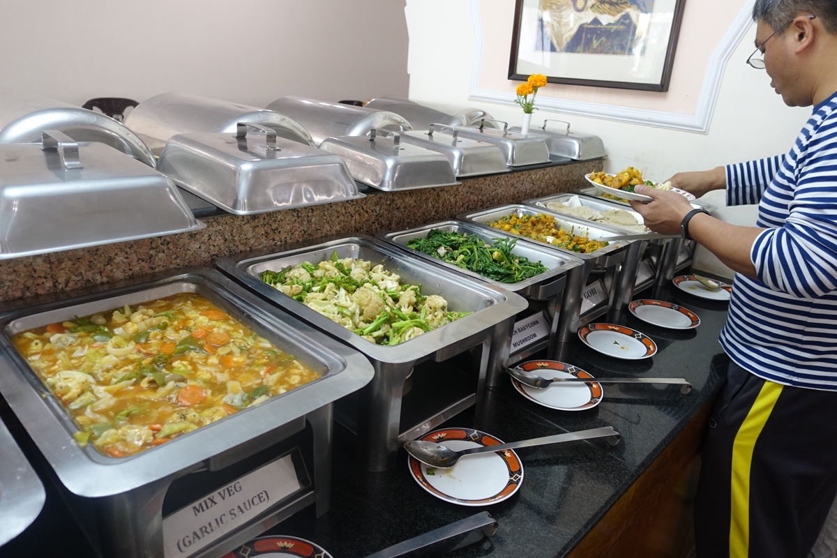 印度佛陀八大聖地旅行,基本上全程都在酒店內使用午晚餐,葷食素食都可以自由選擇,沒有硬性規定吃素食,也不會只有提葷食,旅客可以依照自己的需要取餐,全時段可以供應,酒店可以配合旅客的時間出菜,餐點品質乾淨衛生,讓人倍感安心。