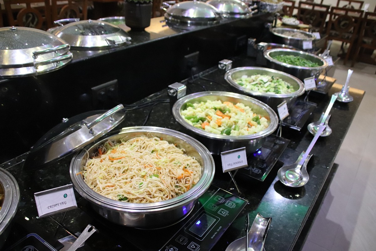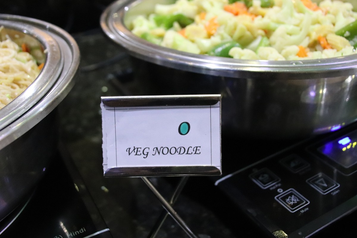 旅客在夾取自助餐時,因印度料理香料較多,有時候不易分辨葷素,加上並非每位旅客都能閱讀英文,部分酒店會在料理前標明葷素,菜品前方紅點標示屬於葷食,菜品前方綠色屬於素食,可依照個人口味自由取用。
