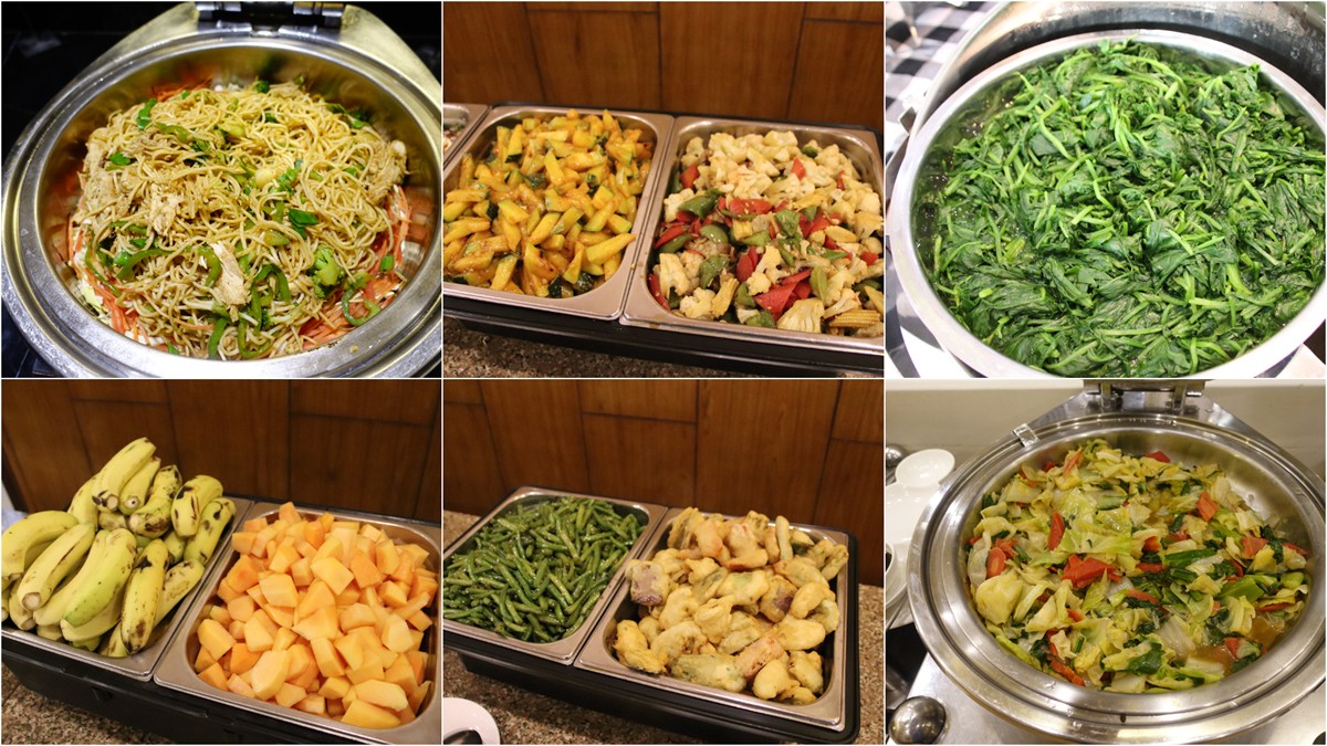 酒店內所安排的素食料理,主要是高麗菜、碗豆、青椒、茄子各式蔬菜所組成,以及炒飯炒麵,搭配餐後甜點水果,根據多年來旅客的反饋,用餐品質令人安心。
